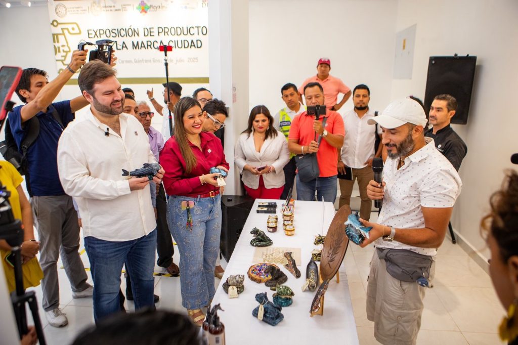 Playa del Carmen, Quintana Roo, 4 de julio de 2025.— Con el firme compromiso de fortalecer la identidad cultural y el desarrollo económico del municipio, la secretaria de Turismo, Estefanía Hernández, y el secretario de Desarrollo y de Atracción de Inversiones, Antón Bojórquez, en representación de la presidenta municipal Estefanía Mercado, presidieron el evento de presentación oficial de productos elaborados por artesanos locales bajo la “Marca Ciudad”, en la Galería de Arte del Palacio antiguo.