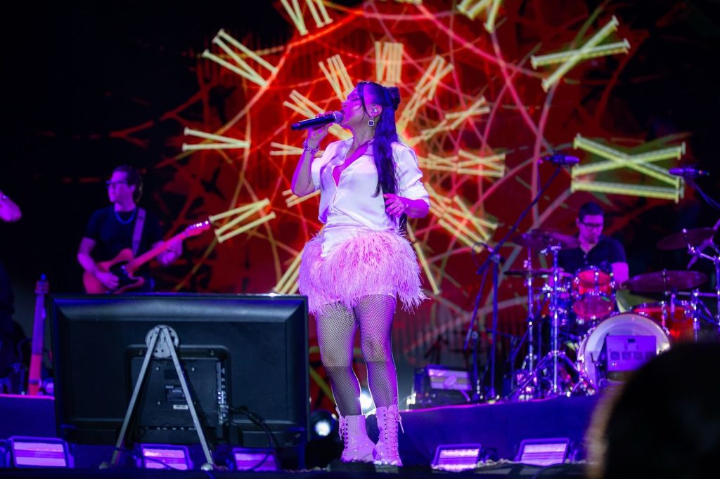 El grupo originario de Guadalajara, Jalisco, conformado por Denisse Guerrero, Edgar Huerta y Ricardo Arreola, ofreció una presentación vibrante al interpretar sus más grandes éxitos, como “Rosa Pastel”, “Por ti”, “Cada que” y “Baila mi corazón”, que hicieron vibrar a Playa del Carmen.