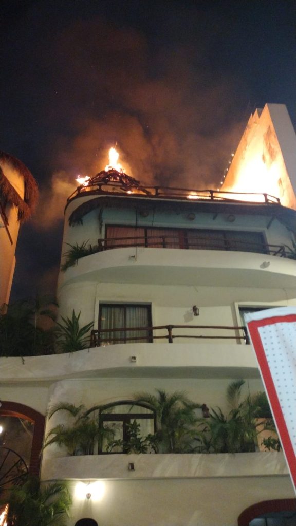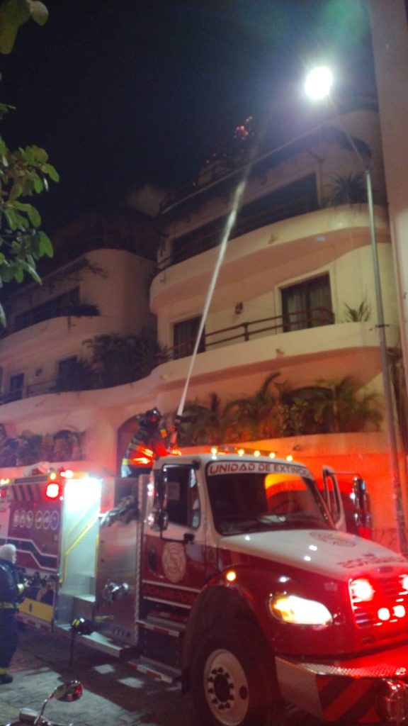 El fuego se originó en la palapa de la azotea y alcanzó habitaciones y áreas comunes del complejo, que cuenta con 12 departamentos, por lo que se evacuó a los 15 residentes; asimismo, debido al desprendimiento de material incandescente se realizó la evacuación de 13 personas en el edificio contiguo.