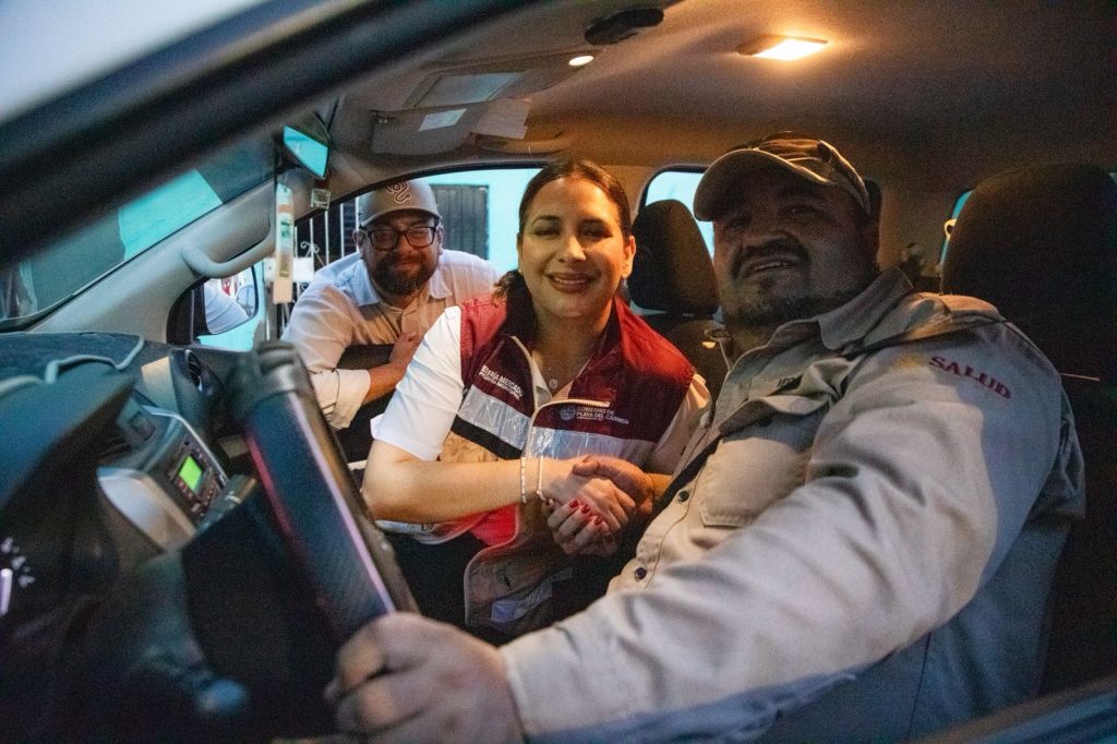 La Presidenta Municipal destaca que lo importante es proteger la salud de la población. Playa del Carmen, Quintana Roo, 1 de octubre de 2025. – La presidenta municipal de Playa del Carmen, Estefanía Mercado, supervisó personalmente, a bordo de una unidad de vectores, el inicio de la estrategia intensiva de nebulización en colonias y zonas prioritarias de la ciudad, con el objetivo de combatir al mosquito transmisor del dengue, zika y chikungunya.