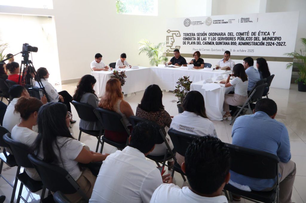Playa del Carmen, 3 de octubre de 2025.– Con el fin de fortalecer la confianza ciudadana y consolidar instituciones transparentes, la titular del Órgano Interno de Control, Cristina Alcérreca Manzanero, en representación de la presidenta municipal Estefanía Mercado, presidió la Tercera Sesión Ordinaria del Comité de Ética y Conducta de las y los Servidores Públicos, marco en el que rindió un informe de actividades.