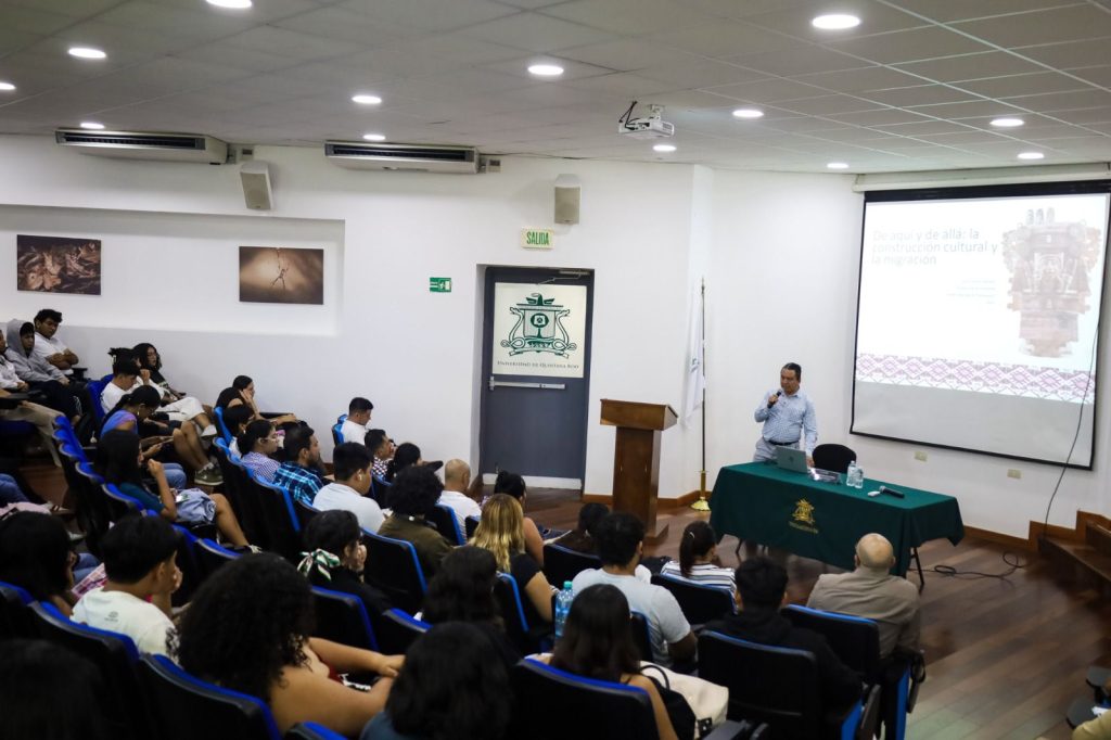 Como parte de las actividades del ciclo académico, en el Foro Cultural y en la Sala Magna 1 de la Universidad de Quintana Roo campus Playa del Carmen, el profesor investigador Arturo Gómez Martínez impartió la conferencia “De aquí y de allá: la construcción cultural y la migración”, que despertó gran interés entre las y los asistentes.