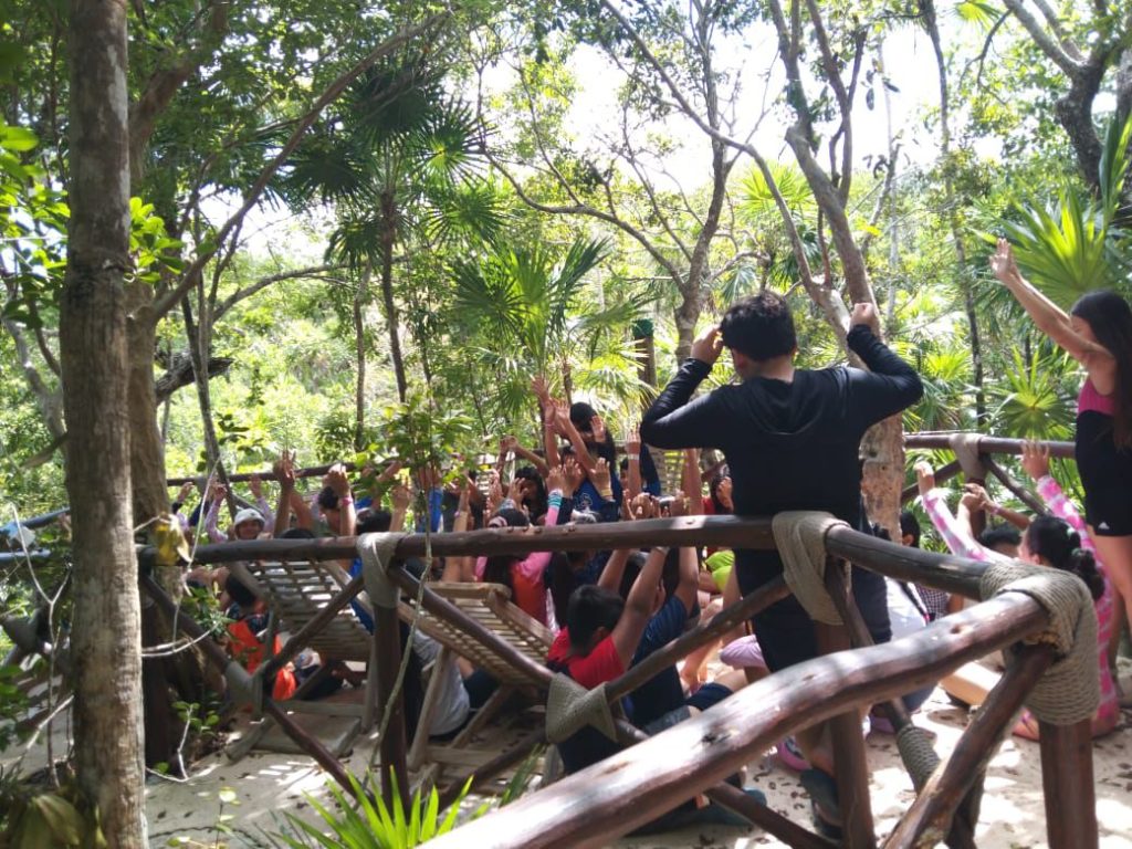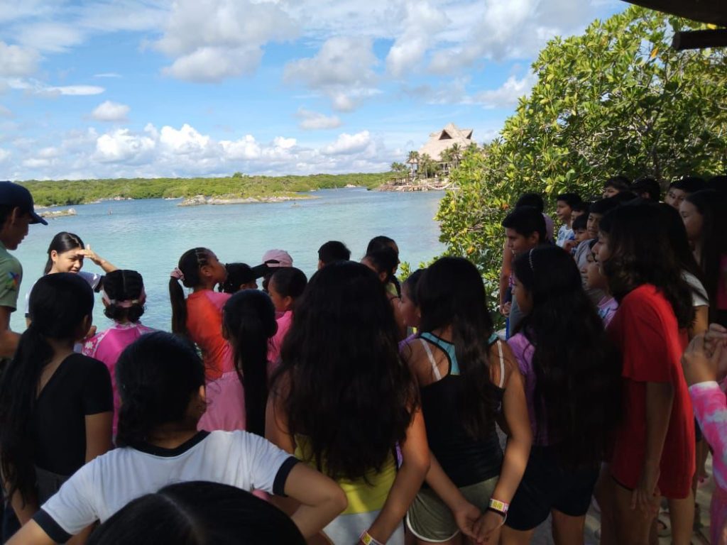 El grupo estuvo compuesto por 57 niñas y niños, así como 4 docentes acompañantes. Durante el recorrido, las y los estudiantes tuvieron la oportunidad de aprender sobre la caleta, una entrada natural del mar hacia la tierra, y sobre la piedra caliza, característica de la región. También conocieron el significado del nombre “Xel-Há”, que en lengua maya se traduce como “orilla del agua”.
