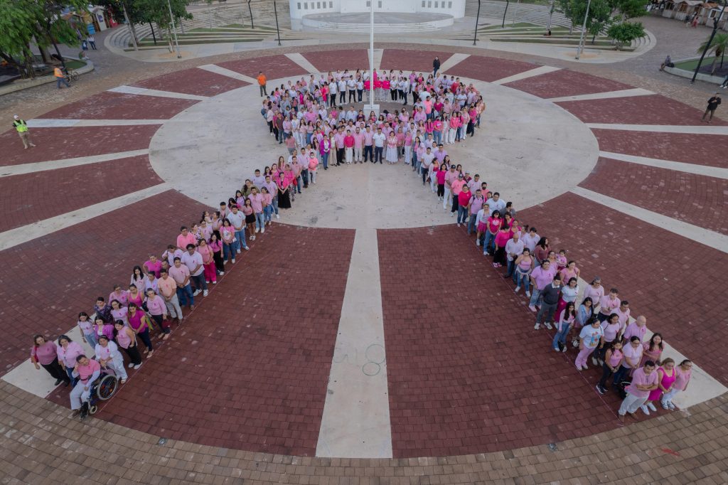 Como símbolo de acompañamiento a quienes hoy enfrentan la lucha contra el cáncer, las y los asistentes formaron un gran Lazo Rosa, emblema de unión y fortaleza, recordando que cada acción cuenta en la batalla contra esta enfermedad.
