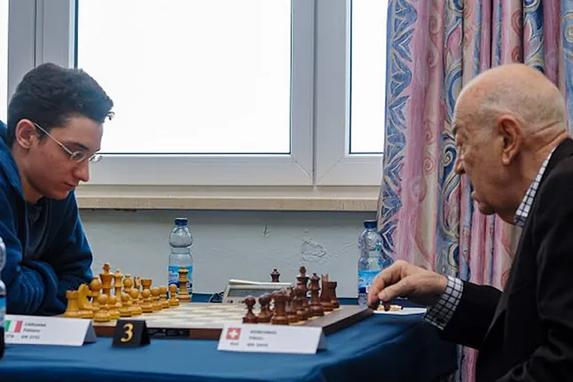 Otro de los duelos intergeneracionales más famosos fue la partida entre Viktor Korchnoi, el mejor ajedrecista sin corona (culpen a Anatoli Karpov) que a los 79 años derrotó en Gibraltar a una estrella ascendente, Fabiano Caruana (19). Es probable que el actual número tres del mundo repase aquella partida en sus peores pesadillas.