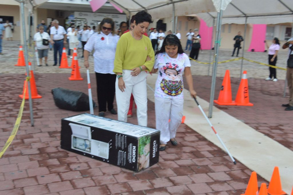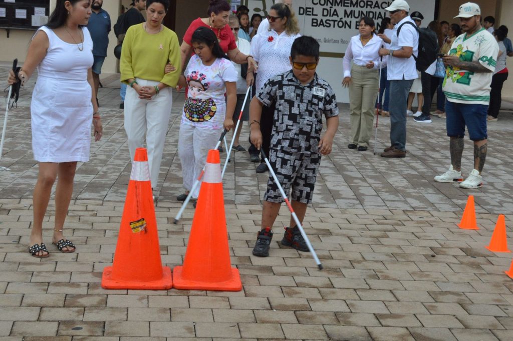 Por su parte, la directora de la Unidad de Atención a Personas con Discapacidad y de la Tercera Edad, Citlali Abigail Borges Tun, explicó la importancia del bastón blanco como herramienta para la movilidad independiente.
