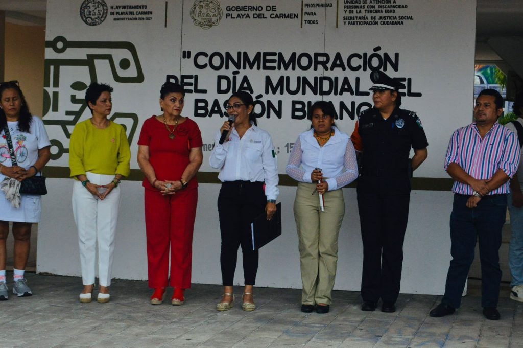 Playa del Carmen, Quintana Roo, 15 de octubre de 2025.– En un ambiente de empatía y respeto, el Ayuntamiento de Playa del Carmen, encabezado por la presidenta Estefanía Mercado, conmemoró el Día Internacional del Bastón Blanco con una jornada de inclusión y sensibilización realizada en la Plaza 28 de Julio.
