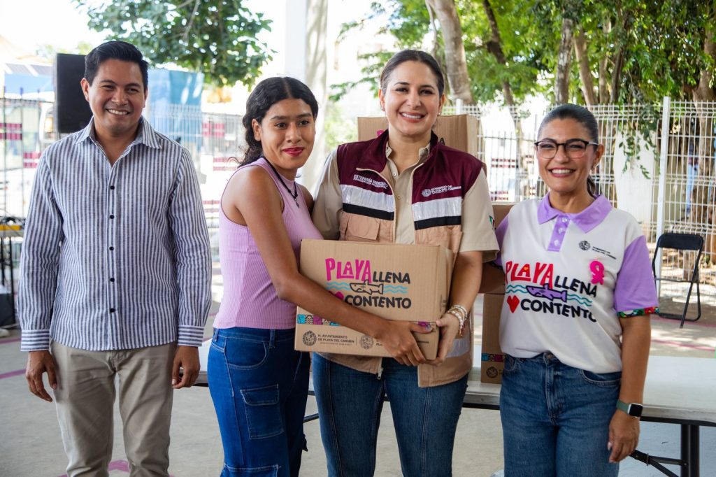 “En Playa del Carmen nadie se queda atrás. Con programas como ‘Playa Llena, Corazón Contento’ reforzamos nuestro compromiso de llevar bienestar y prosperidad a cada rincón de nuestro municipio”, expresó Estefanía Mercado durante su mensaje, al realizar la entrega simbólica de paquetes alimentarios junto a beneficiarios del programa.