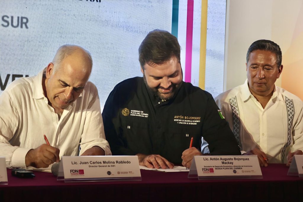 En la firma participaron el director general de GS1 México, Juan Carlos Molina Robledo; el director de Operaciones, Sergio Zúñiga Bohigas; y el director de Desarrollo de Asociados, Alejandro Trejo Rivera, quienes coincidieron en que Playa del Carmen avanza con una visión moderna e incluyente del desarrollo económico.