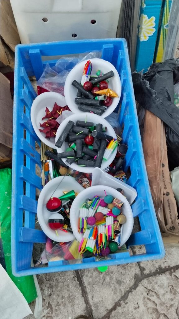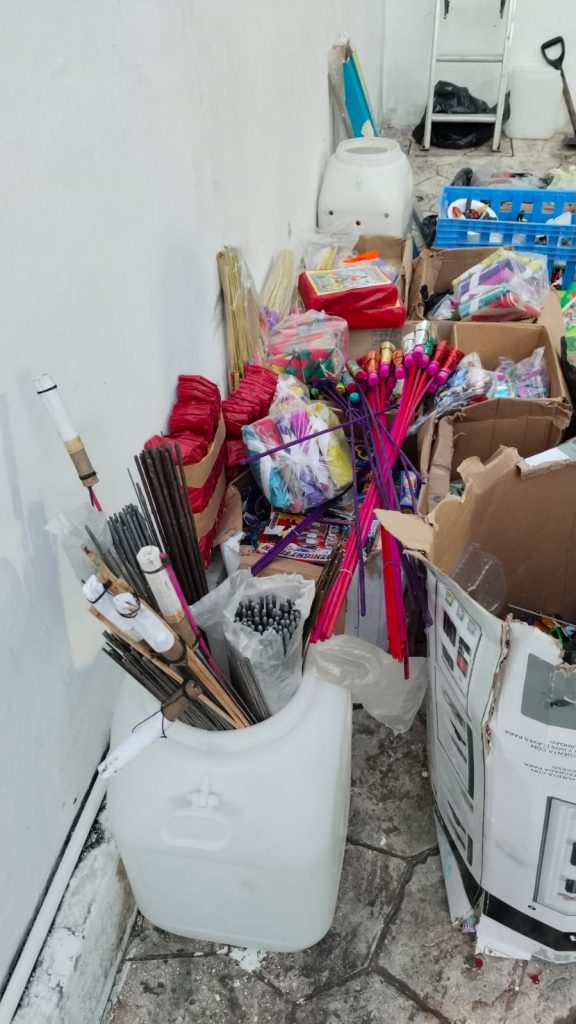 En este marco se realizó el decomiso de aproximadamente 650 kilogramos de pirotecnia, resultado de labores de inspección y atención a reportes ciudadanos. Con este aseguramiento, suman ya alrededor de una tonelada de pirotecnia decomisada en lo que va del Operativo Guadalupe-Reyes, reforzando las medidas para prevenir accidentes y proteger a las familias.