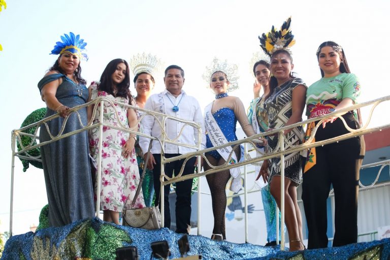 Con sus respectivas comparsas y carros alegóricos el derrotero estuvo encabezado por el alcalde Gilberto Gómez y consejales, así como los máximos soberanos del Carnaval 2026 de Puerto Aventuras: Lía Hernández Girón y Julio César Sánchez Ek.