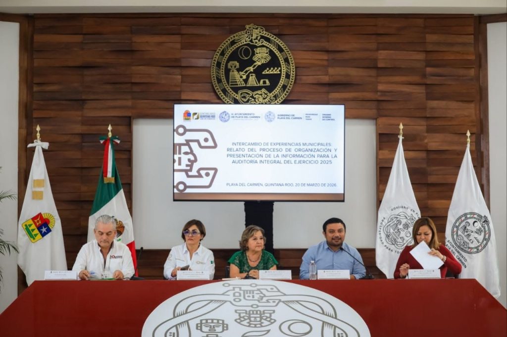 Playa del Carmen, Quintana Roo, 20 de marzo de 2026.— Por iniciativa del gobierno de Playa del Carmen, encabezado por la presidenta municipal Estefanía Mercado, y a través del Órgano Interno de Control, se llevó a cabo por primera vez un espacio de diálogo y colaboración sin precedente denominado “Intercambio de experiencias municipales”.